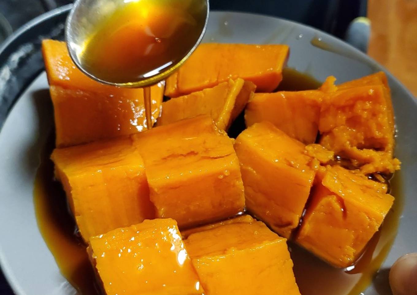 - Una vez cocidos, corta los camotes por la mitad y sirva cubiertos con el jarabe de piloncillo. Se puede disfrutar en un bol con leche para el desayuno