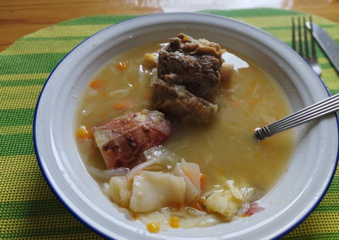 Sopa de dos carnes de batata y repollo