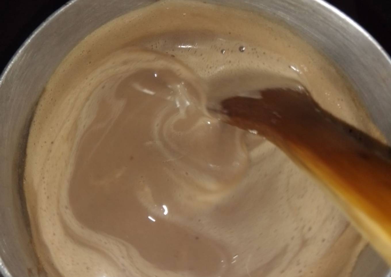 Agregarle un chorrito de leche para integrar todo (yo usé cocoa, como ya es dulce se agrega menos azúcar)