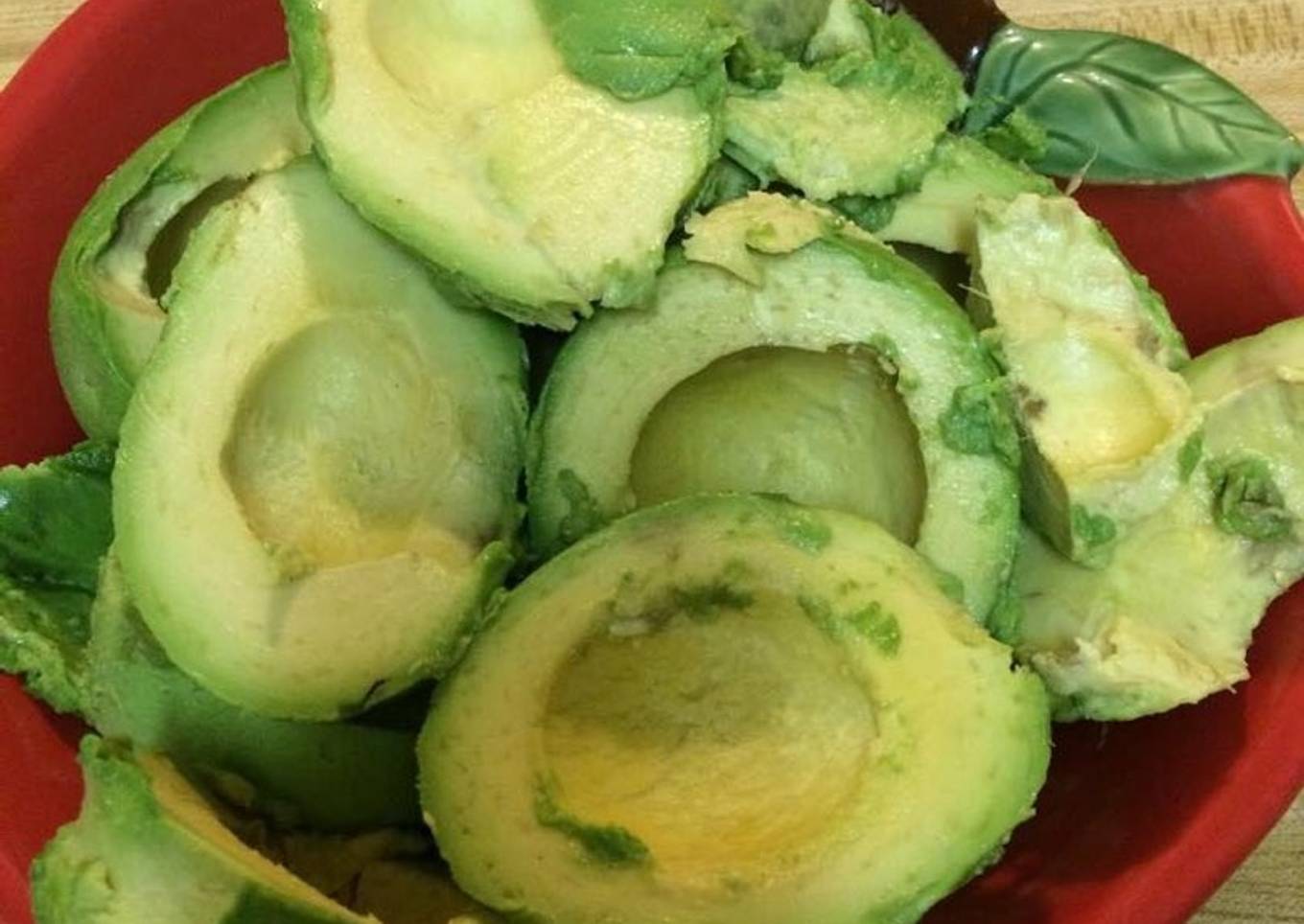 - Partes tus aguacates por mitad, sin preocuparte porque algunos tengan un punto oscuro, ya que después se los quitaras. Con la cuchara de tamaño mediana comienzas a removerlos de la cascara. Y digo mediana porque es justo el tamaño para sacar la mitad del aguacate sin romperlo!!! Que si por algo ocurre, pues esto no cambiara su sabor!!! Seguira siendo aguacate!!!
