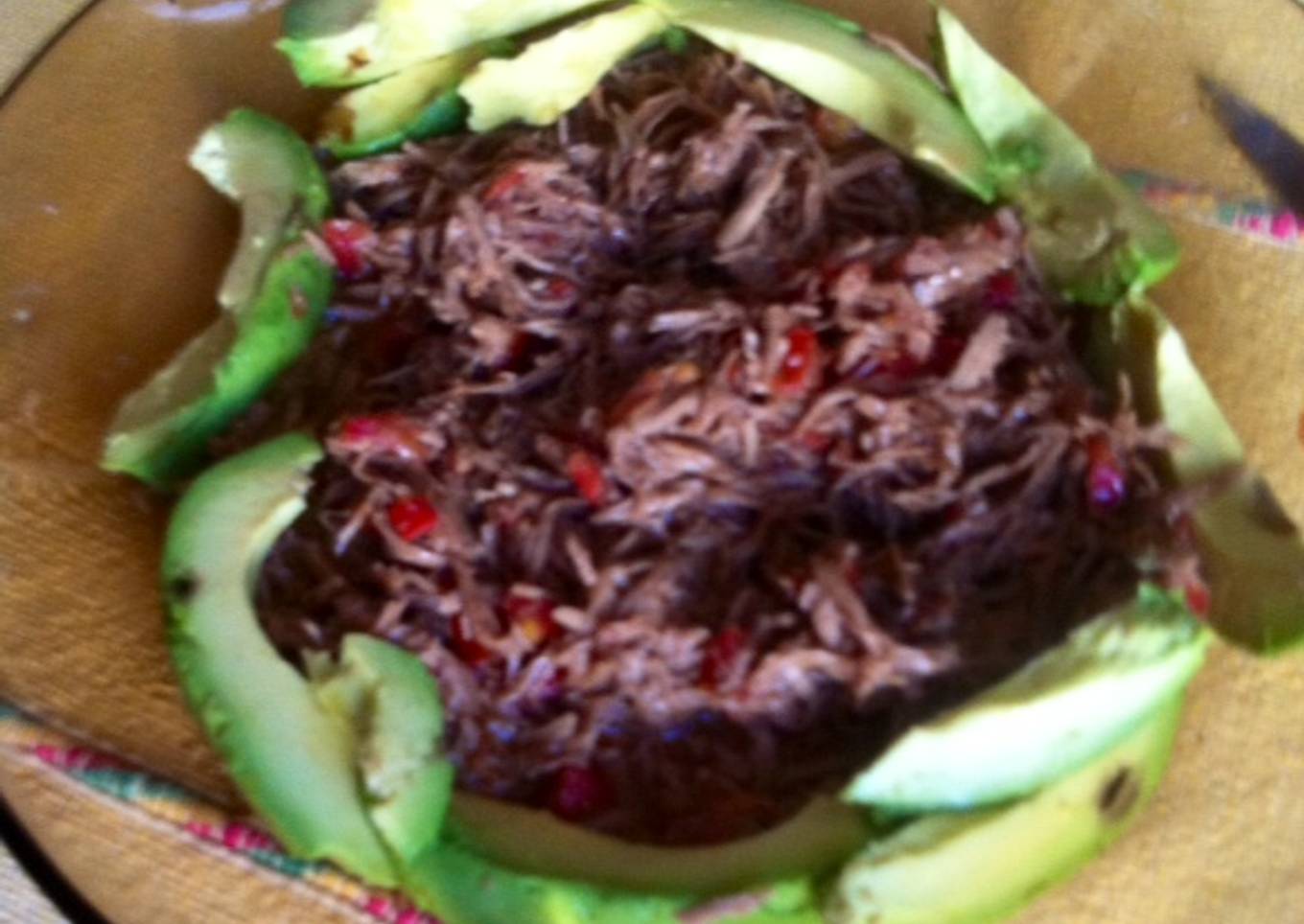 Salpicón de res con aguacate en tacos de tortilla de harina. Este platillo es uno de mis favoritos y lo prepara mi cuñada siempre que voy a México.