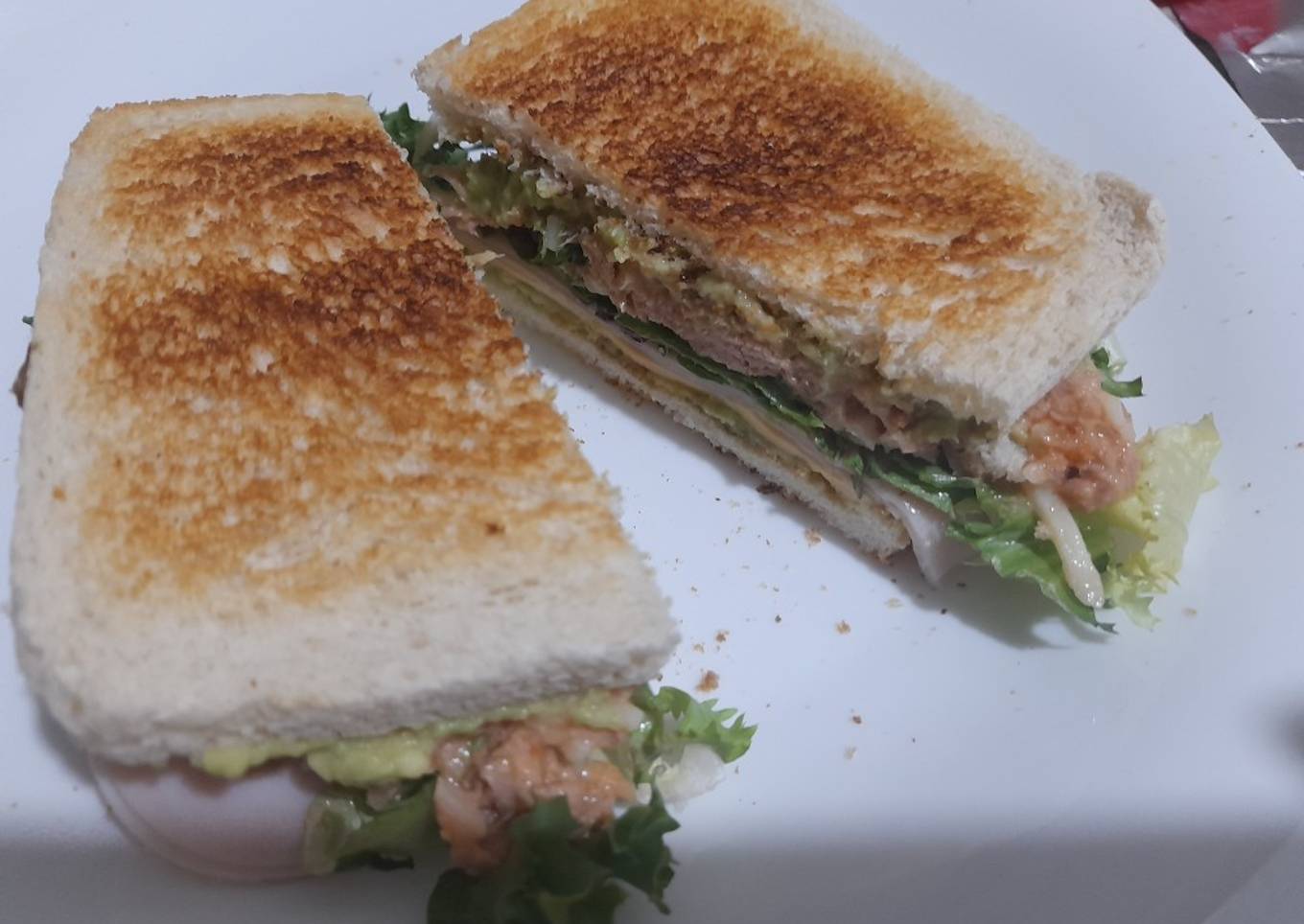 Sándwich de vicio atún, pavo y aguacate