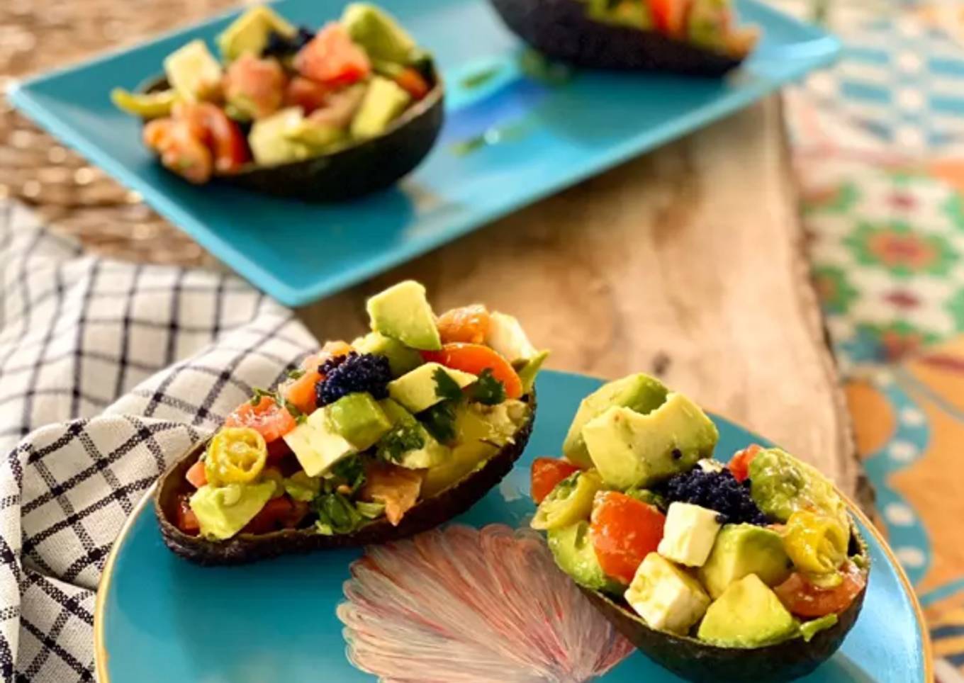 - Rellenamos las cáscaras del aguacate y servimos con un poquito de sucedáneo de caviar por arriba de cada mitad. Dejamos en el frigo hasta el momento de servir.