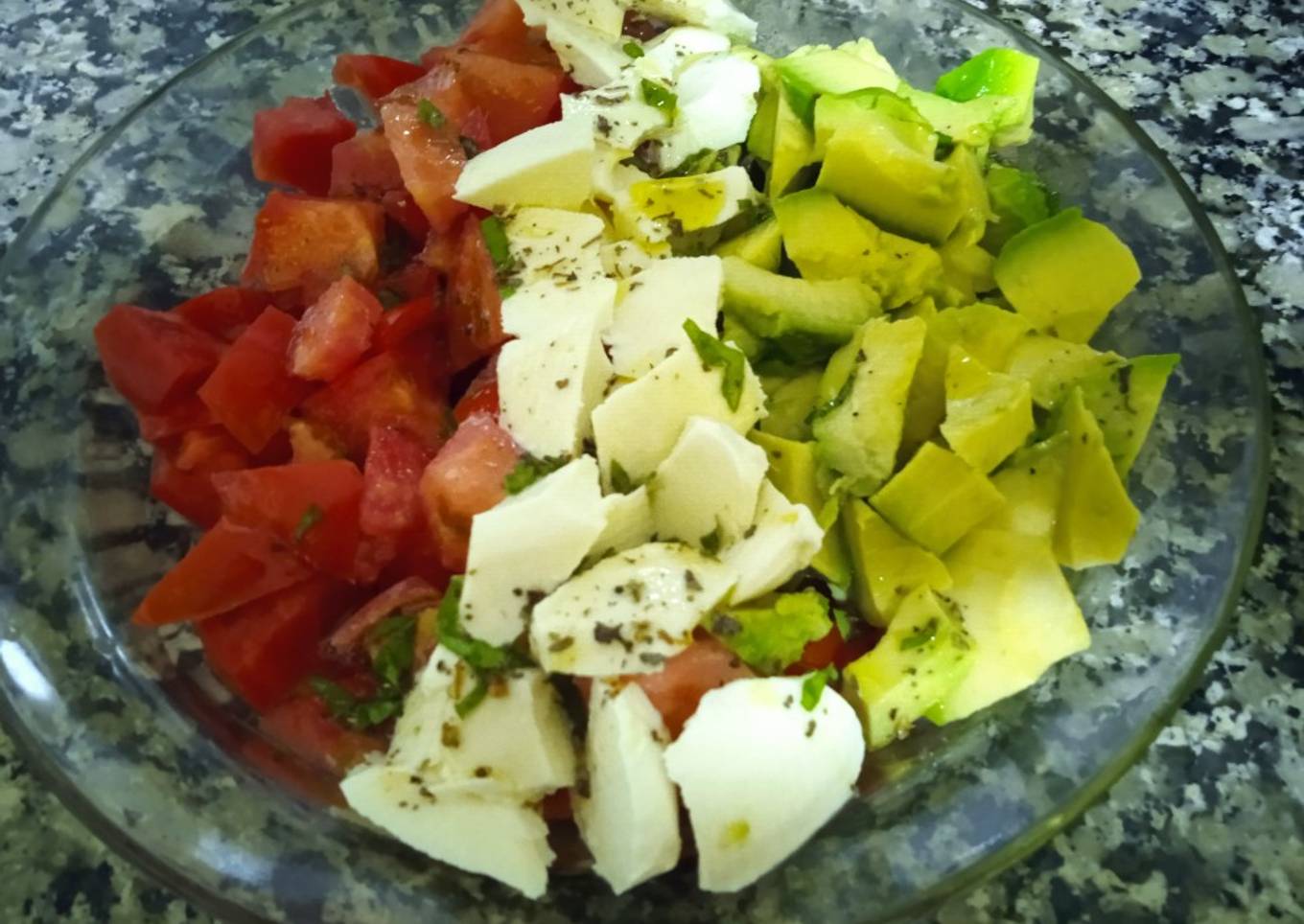 Instructions to make to make Ensalada de tomate, aguacate y mozarela