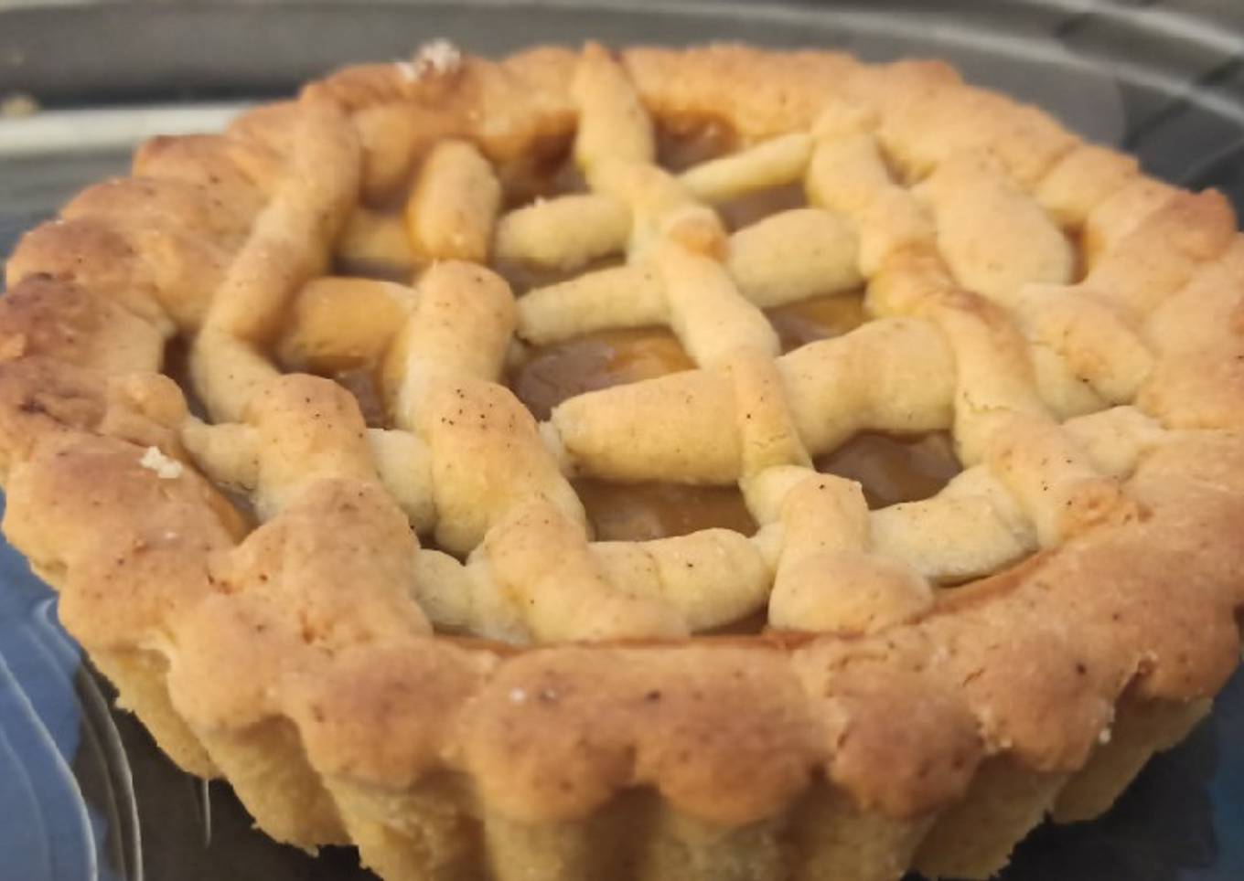 - Derretir el dulce de batata (previo cortarlo en pedacitos pequeños) en un jarro a fuego medio revolviendo constantemente y con agua que casi cubra el dulce. Revolver hasta que se forme una melaza. Verterlo en las tarteletas y dejar que se enfríe antes de poner el enrejado de masa por encima.