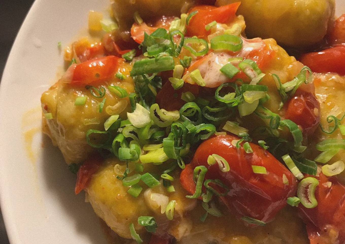 Ñoquis de batata rellenos con muzzarella + compota de cherry’s