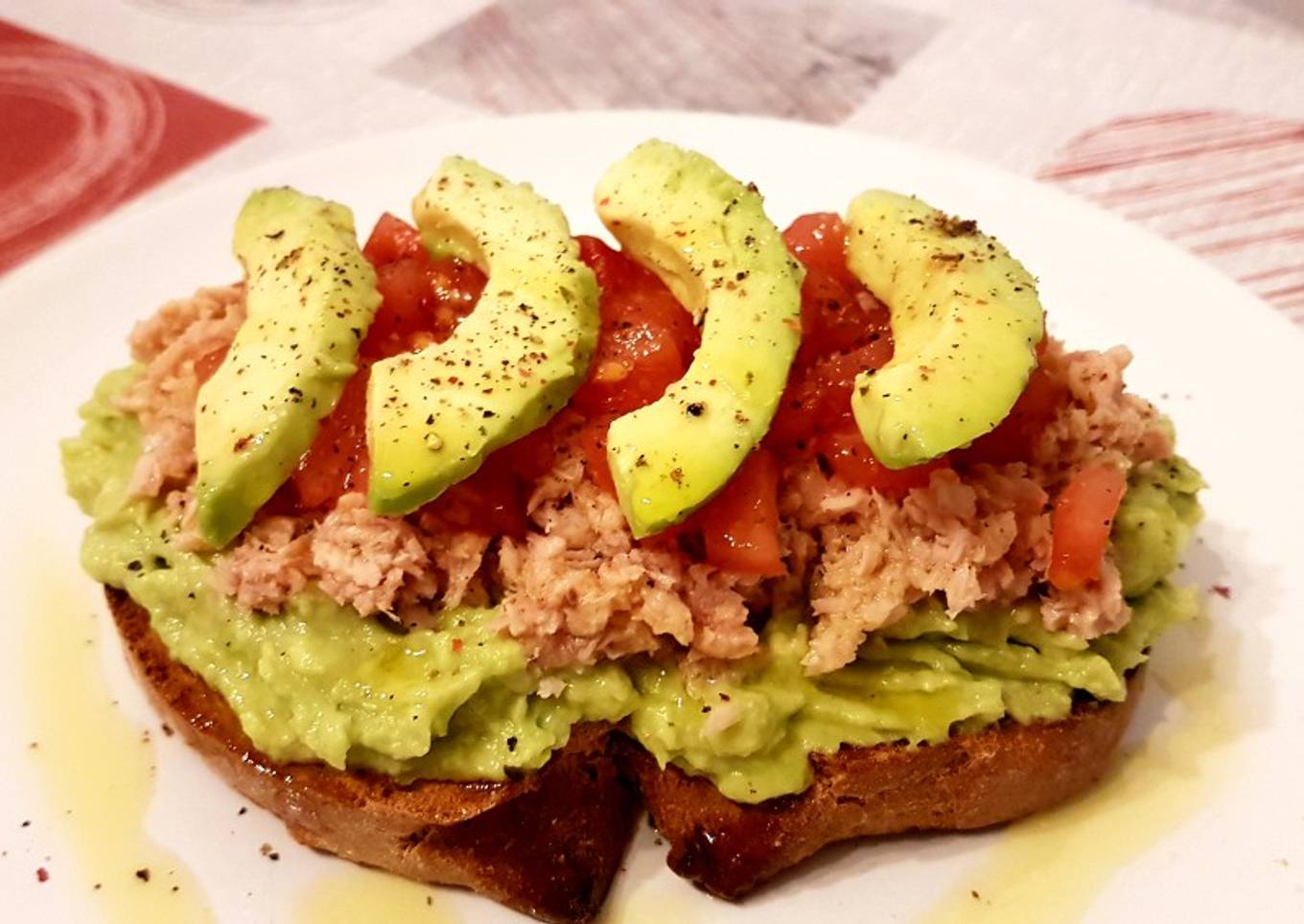 Tostada de aguacate 🥑atún🐟 y tomate🍅