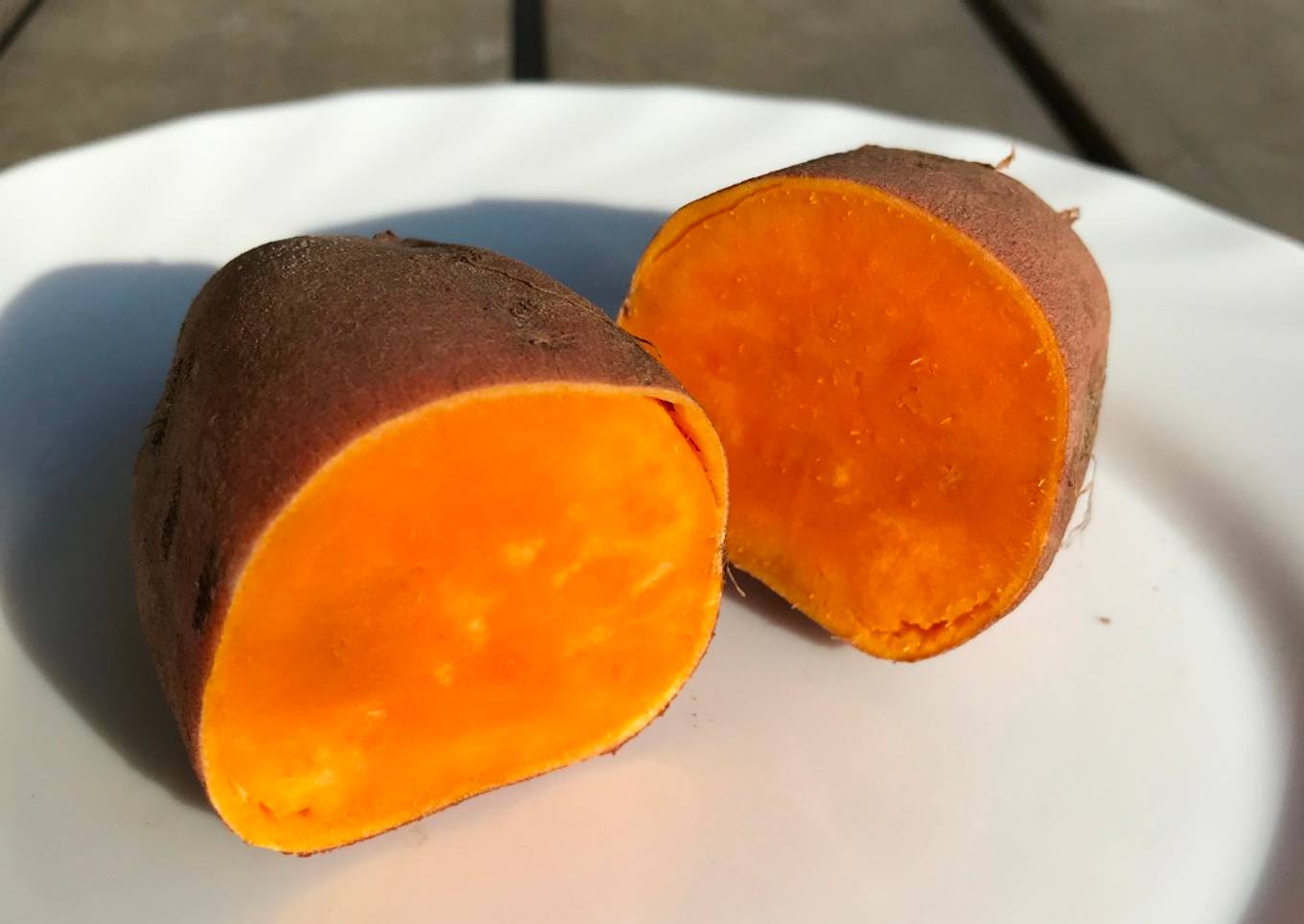 - Calentar en la microondas por 3 minutos a 600W. (es depende de tamaño del camote). Comprueba si está cocido por dentro.