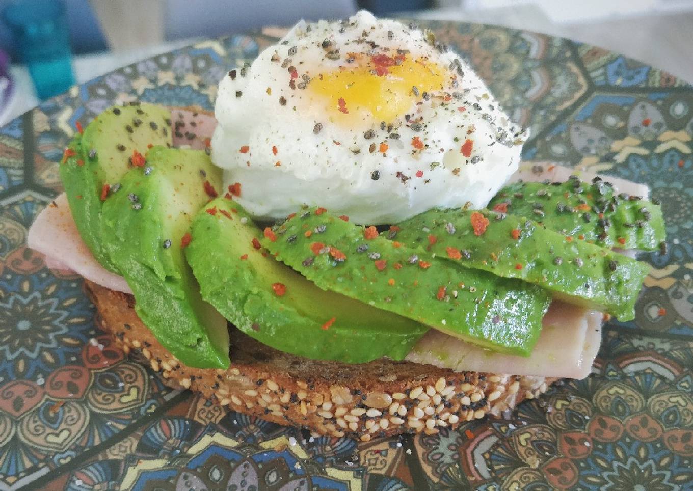 - Colocamos encima del pan la loncha de jamón y el medio aguacate.
